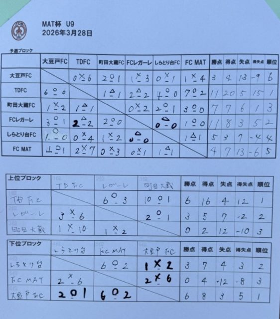 3/28(土) TDFC U-9・U-8 【 FC MAT 招待 MAT杯 3年生大会 】 『 積極的なラインブレイクへの、技術・戦術・攻撃の組み立てと、選択と実行のクオリティの高さを意識しながら、実行と発揮の精度も試し続けられた 貴重なプレー経験と試合経験を積みあげられた 中で、見事、優勝!! を勝ち取ることができました!!! 』 @海老名市 中野公園 人工芝グランド